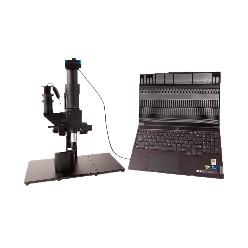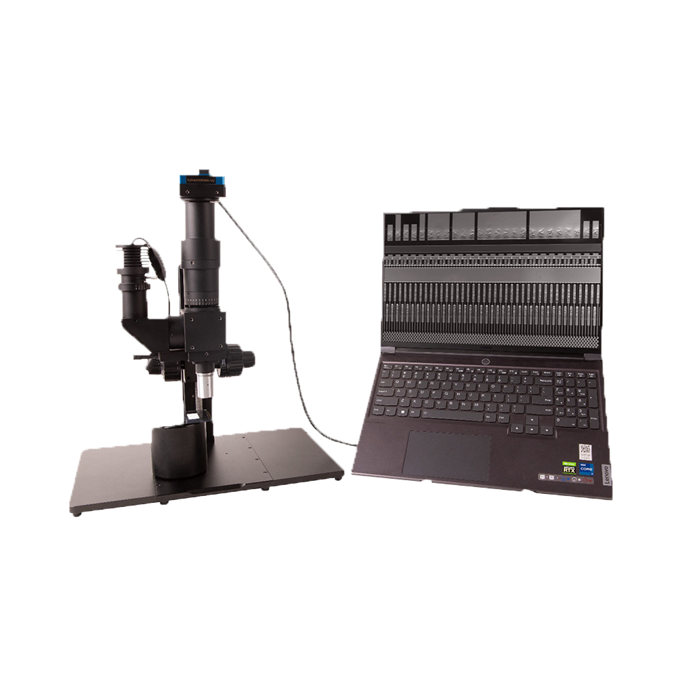 - Blue LED illumination with a monochrome camera yields optimal contrast.