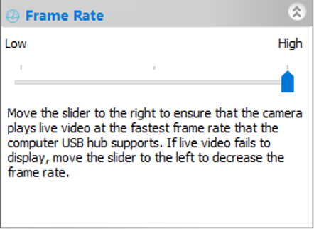 3) If exposure time and bit depth are not the reasons, please check frame rate level settings and ensure they are in the correct position. Even though the rightmost is the fastest, if this is a performance issue, dragging it to the left may improve frame rate.