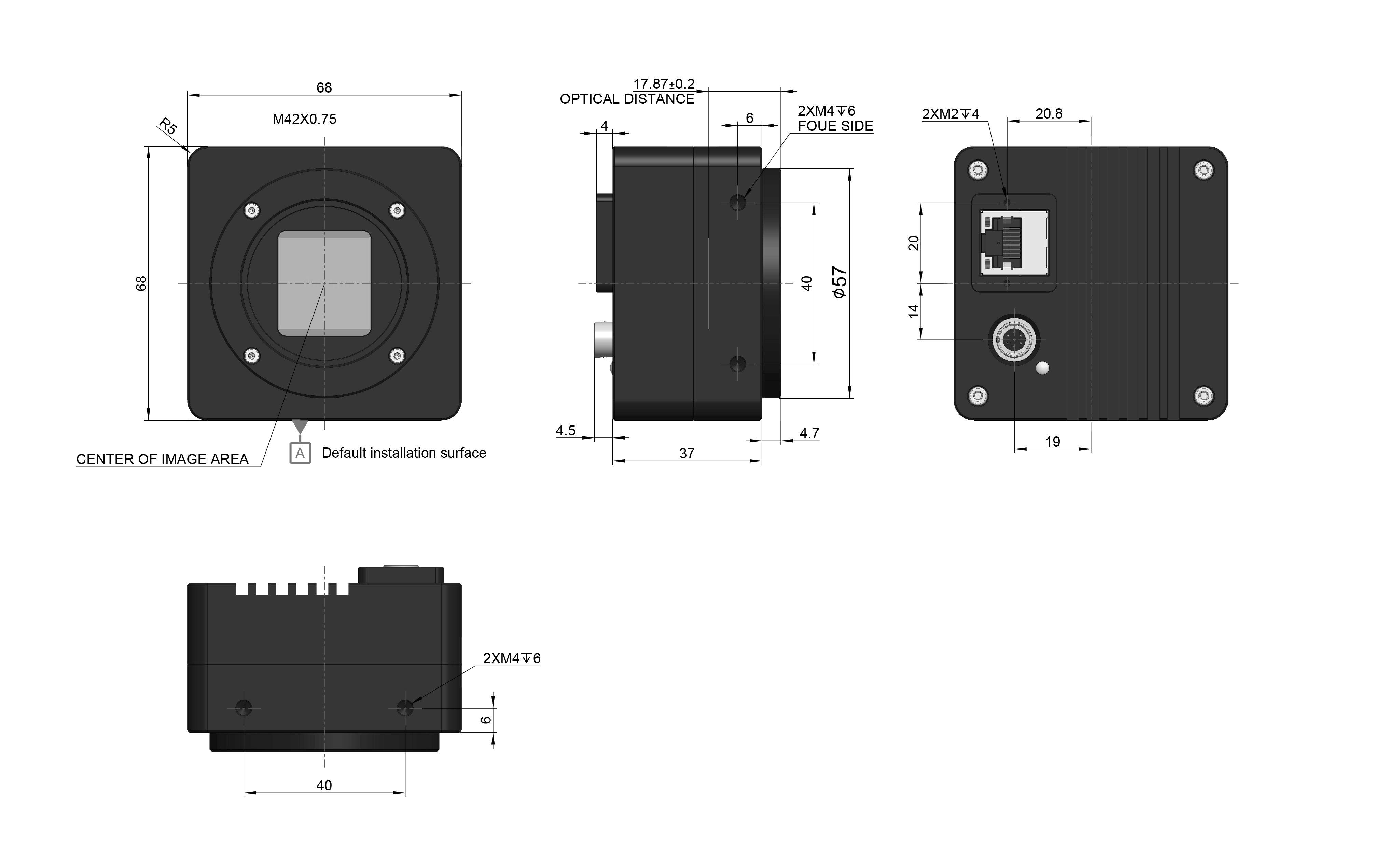Outline reference for IUA Series compact industrial cameras