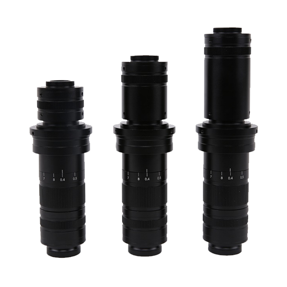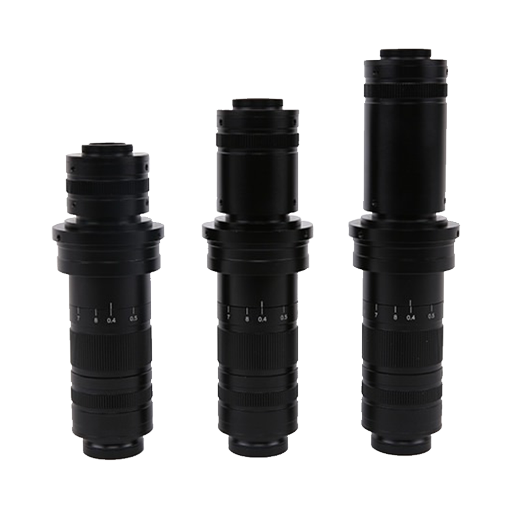 Modular-designed continuous zoom monocular objective system, supporting various magnification combinations and auxiliary accessories, suitable for machine vision inspection, industrial inspection, scientific research and other applications.