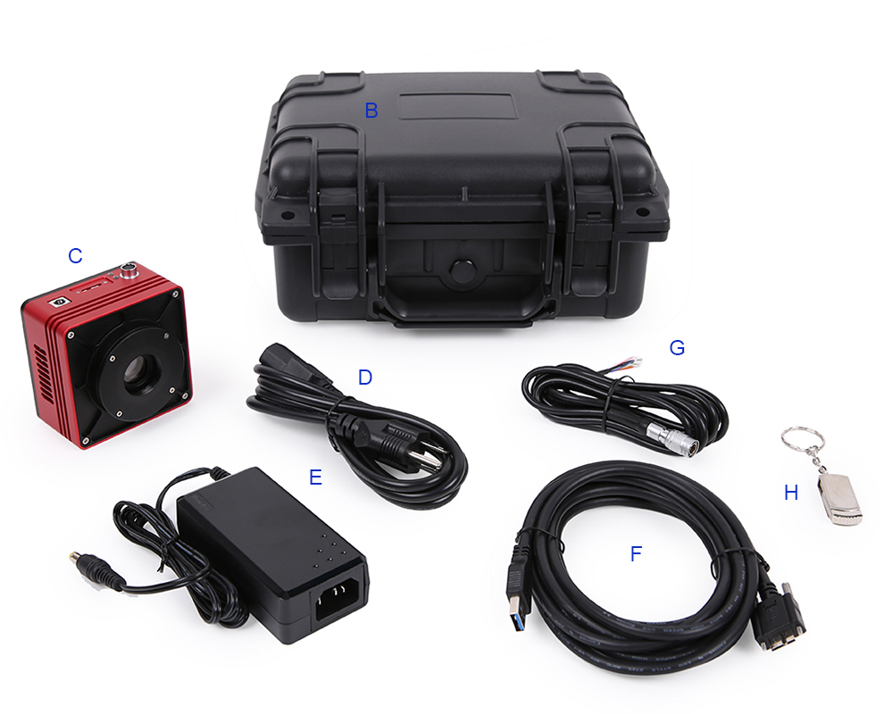 - F High-speed USB 3 Type-A to Type-B gold-plated data cable (1.5 m)