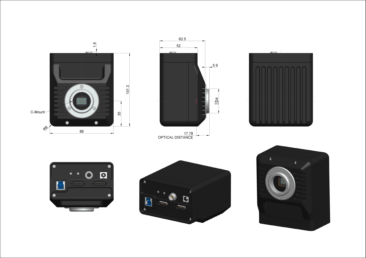 - C-mount standard lens interface