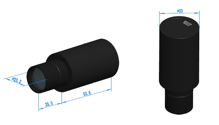 Mechanical outline of SPCMOS USB2.0 eyepiece cameras with reducer optics