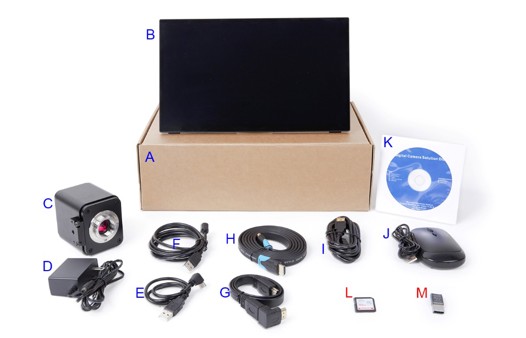 The Touptek TXCAMLITE4K series is a multi-function CMOS microscope camera with HDMI/USB dual outputs. It has built-in touchscreen control, enabling image and video capture without an external PC.