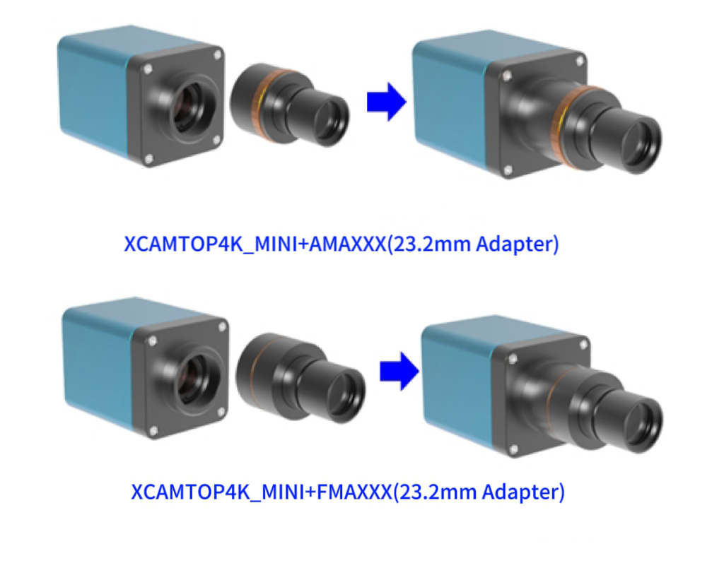 Dia.23.2 mm eyepiece to C-mount: 108001/AMA037, 108002/AMA050, 108003/AMA075 (choose based on the camera and microscope).