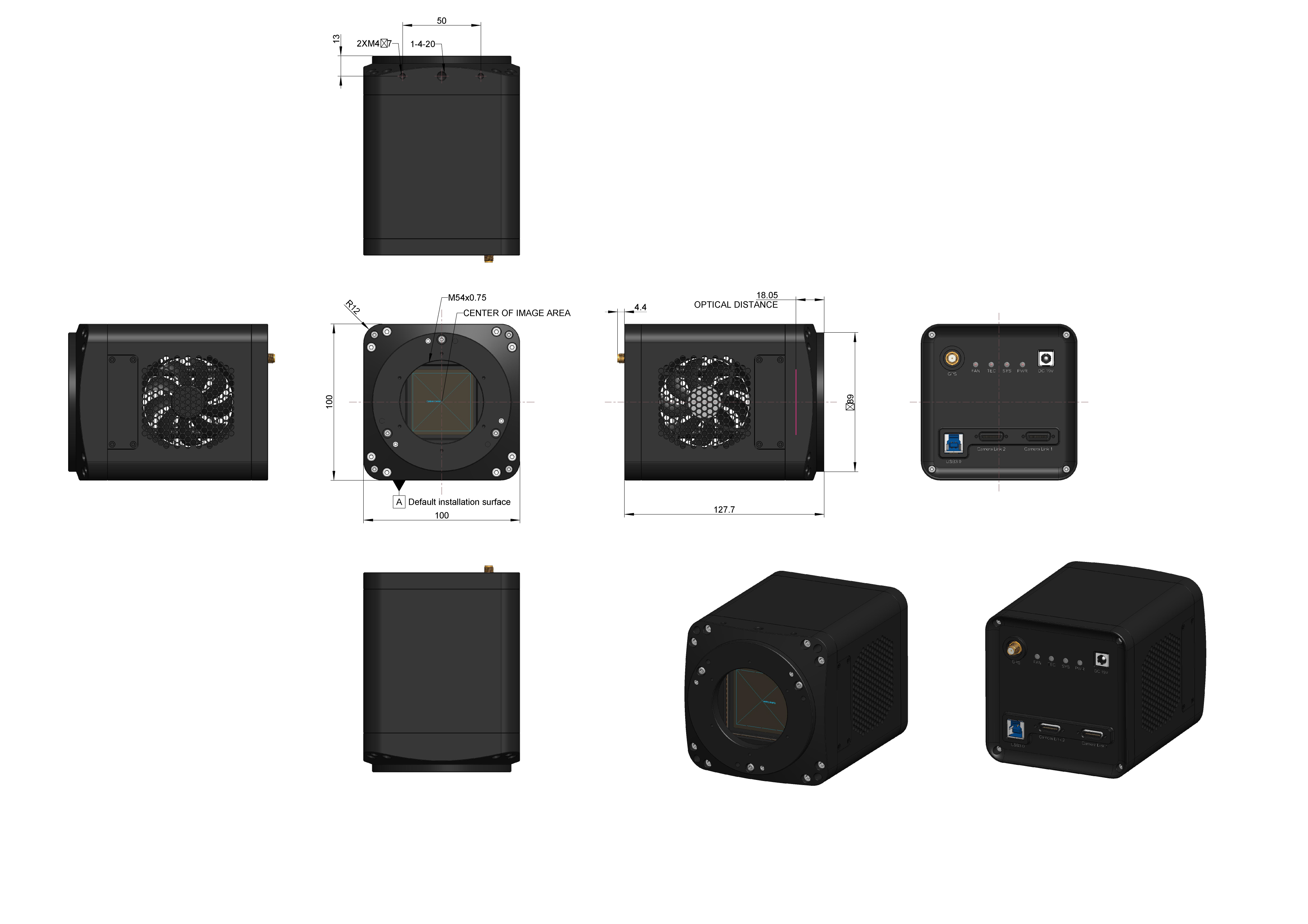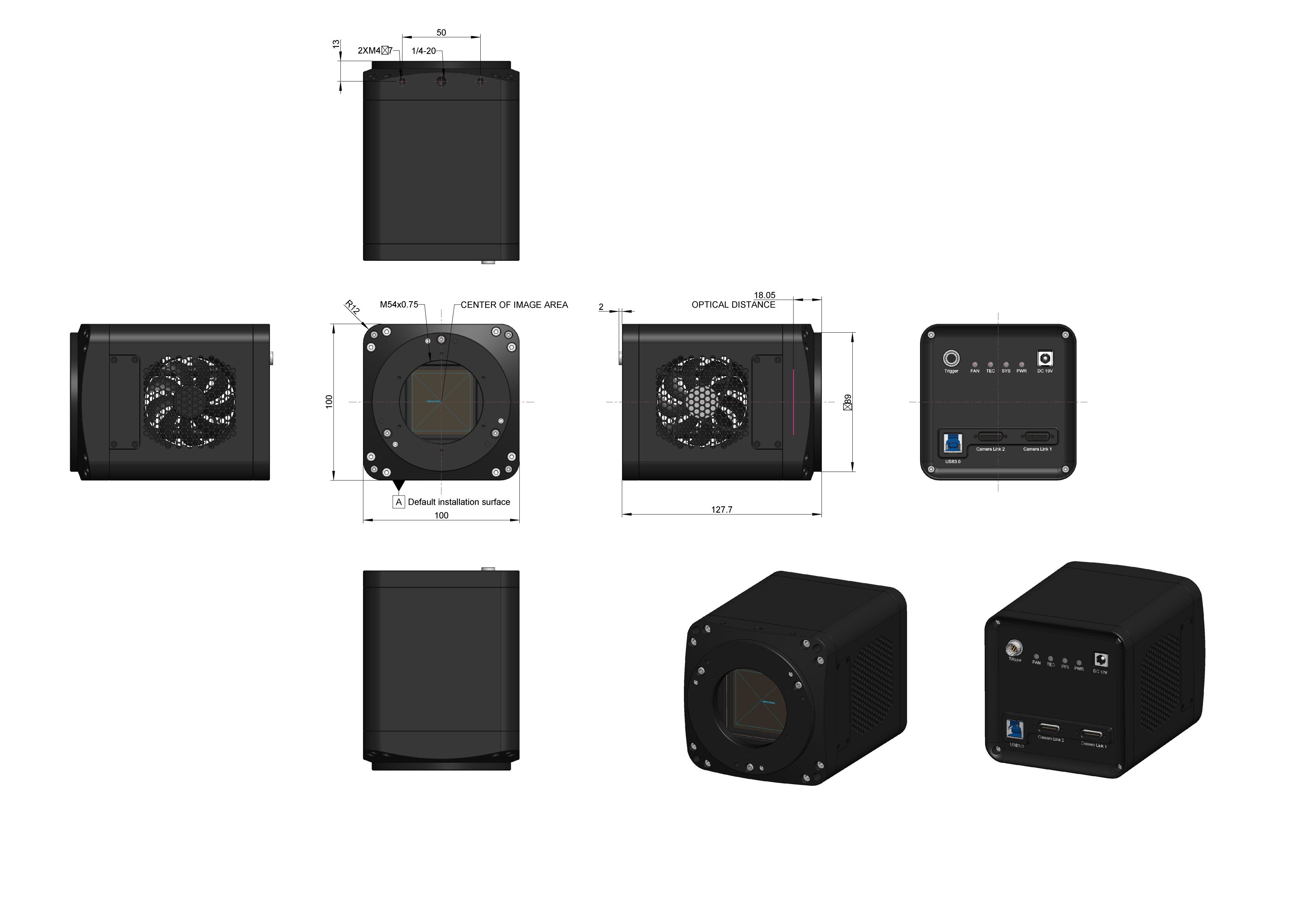 Outline drawings for sMAX cooled scientific CMOS cameras